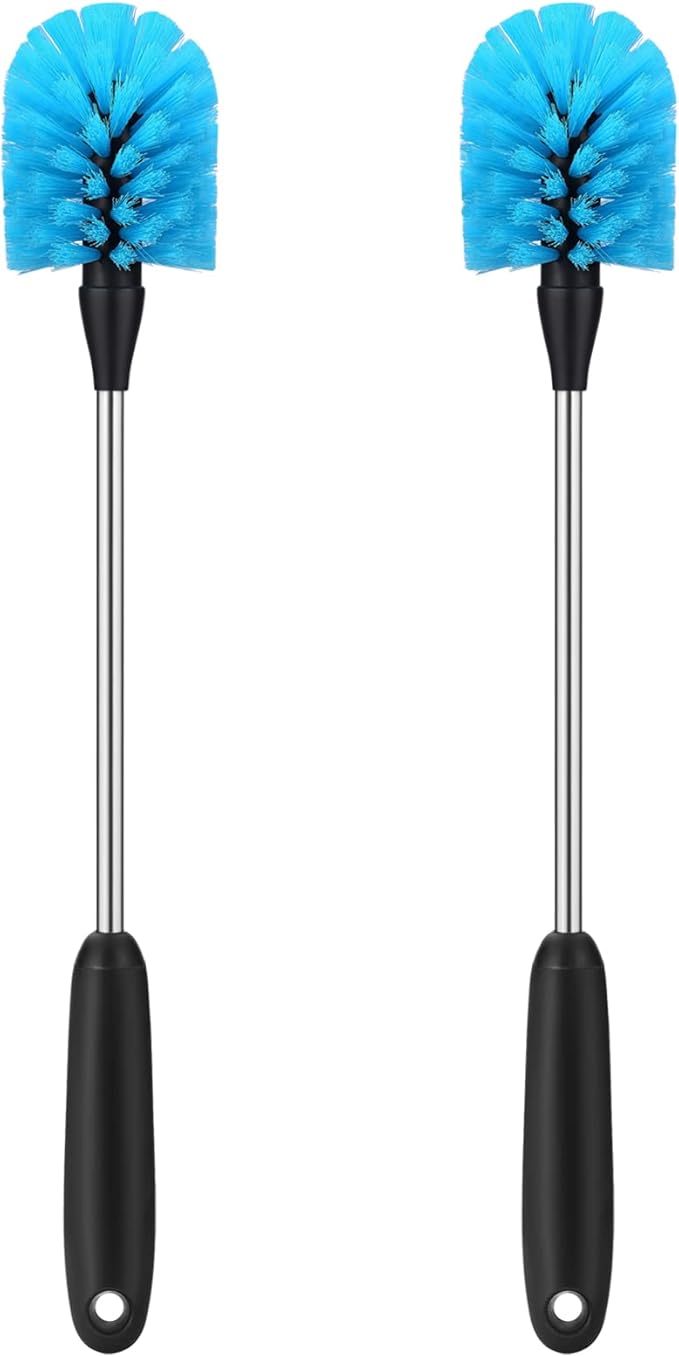 Stainless Steel Water Bottle Brush, Long Handle Scrubbing Brush, Built for Cleaning Sports Bottles, Baby Bottles, Cups, Coffee Mugs, Glasswares, Wine Decanters, Flask, 2 Pack, 15 in