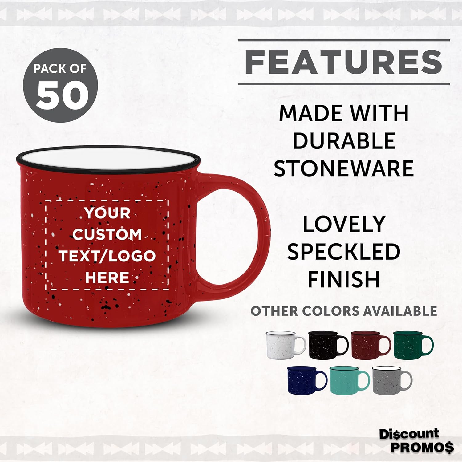 DISCOUNT PROMOS Custom Ceramic Campfire Coffee Mugs 13 oz. Set of 50, Personalized Bulk Pack - Perfect for Tea, Espresso, Cappuccino, Hot Cocoa - Red