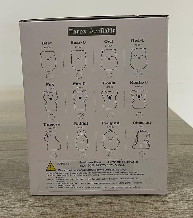 - ☀【Large size safety light】: The size of this fox night light is about 4.92*5.11*6.69 inches, which is larger than the general animal shape night light. The Glinrui squeezable night light has a comfortable and soft touch. It has no sharp edges, no glare, no heat, it can be safely placed on the bed and table, it is perfect for night lighting for babies and toddlers, boys, girls, students, women, the elderly.