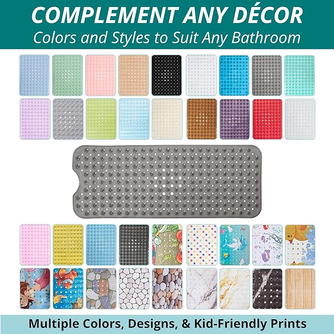 - Who Needs Slippery & Small Rubber Mats that put your safety at risk? This ergonomic shower mat comes in extra large, a full 40" x 16" size, to protectively hug your bathtub floor and prevent accidental falls