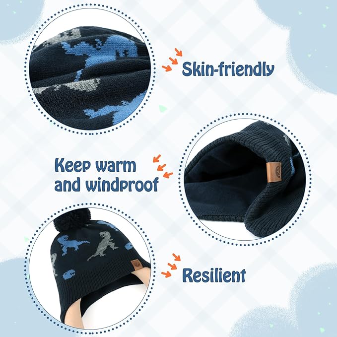 - Cozy Lining Kids beanie hat for boys and girls in cold weather is made of soft Acrylic, available for child aged 1-7T