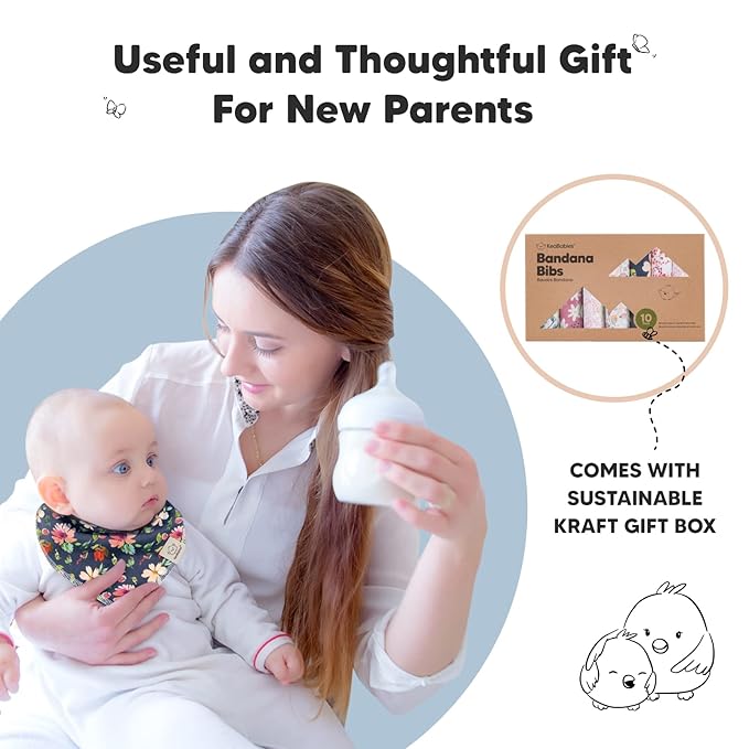 - 10-Pack Exclusively Designed Baby Bandana Bibs - Crafted with exclusive nifty prints on 100% organic cotton, double layered with plushy soft water resistant fleece, and put together with modernistic overlock stitching. The final product: functional baby bibs for girls and boys that instantly stands out. Every piece of KeaBabies Bandana Drool bib is handcrafted with quality materials and an extra dose of love. Its unisex colors are suitable for baby boys and girls.