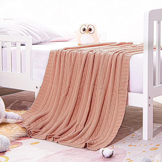 - PRODUCT FEATURES: A tight woven ensures it will not lose shape or have loose threads. And it's shrink resistant and has strong elasticity. The classic baby blanket gets a facelift with our new cable knit textured design. Choose one of our beautiful color options to fit your baby's style and personal decor. Soft, textured and warm, this blanket is a unique baby gift idea for your next baby shower or first birthday.