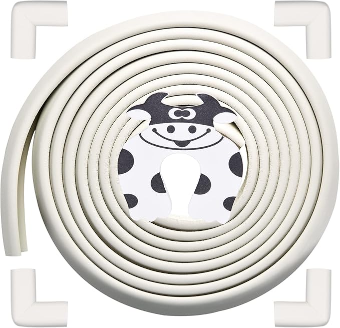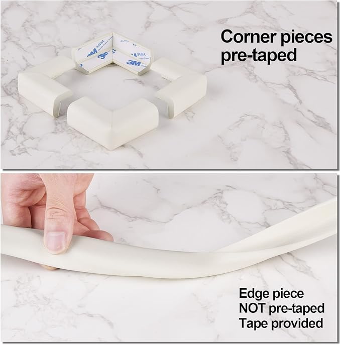 Baby Proofing Edge and Corner Guards, Safety Furniture Bumper with 3M Double-Sided Tape,16.40ft Edge + 4 Pre-Taped Corners Baby Corner Protector for Fireplace, Table, Stair, Cabinet (Beige White)