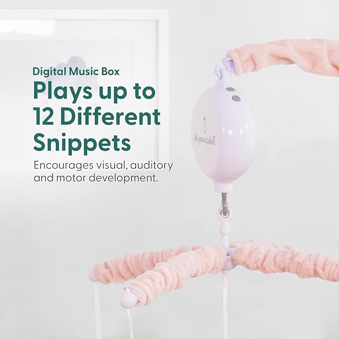 - Versatile Melodies: With a digital music box that offers 12 different lullabies, you can easily change the song to suit your baby’s mood. The handy volume control lets you keep it soft or a little louder.