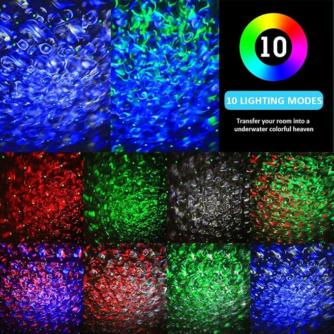 - 【10 Lighting Modes】Multiple lighting modes combined with dynamic night ocean projections at different speeds, creating a relaxed, romantic and colorful space projection atmosphere. Starry Projector with adjustable brightness, multiple ocean wave colors and star twinkled modes to easily achieve your dream underwater room.