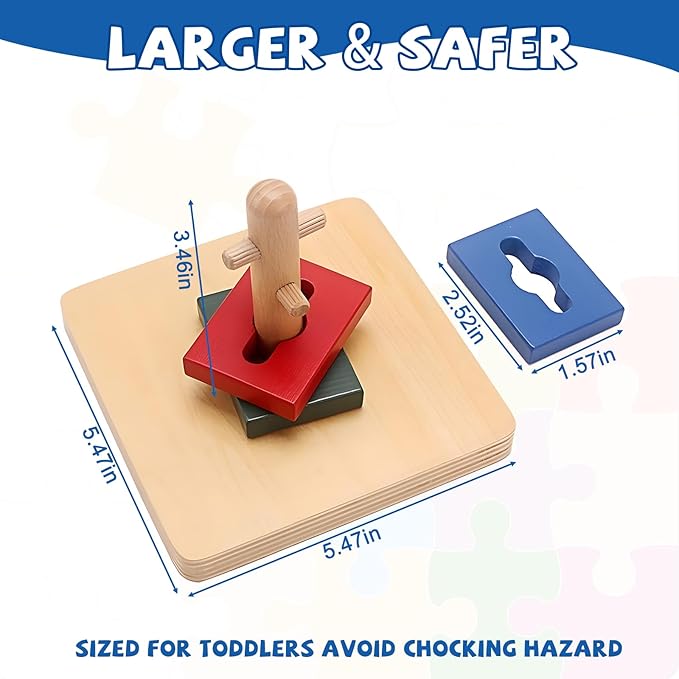 - đ±ăEnhance Fine Motor Skills with twist and sortă: Foster your child's fine motor skills with the Montessori Twist & Sort Dowel. This engaging educational toy includes one wooden dowel and three rectangular blocks (green, blue, and red) to twist and sort