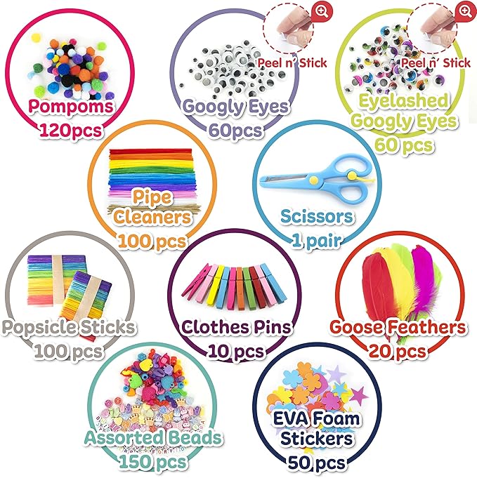 - This giant box of kids craft supplies contains everything you need for a creative day.