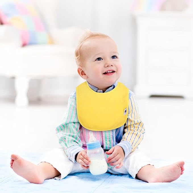 - Double Sided terrycloth design:Snap bib keep your baby clean & dry with these large, waterproof PP lined, terry cloth drooler bibs. The plain bright colors for boys.