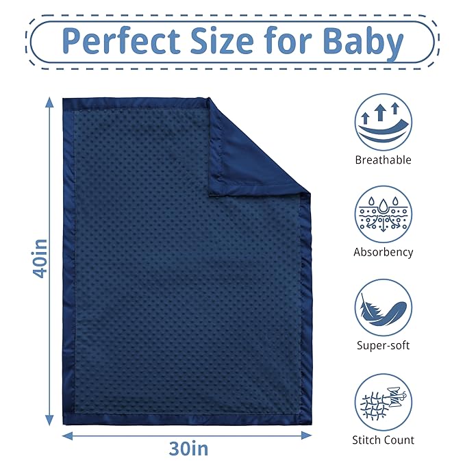 Pro Goleem Baby Soft Minky Dot Blanket with Silky Satin Backing Baby Gifts for Boys and Girls (Navy Blue, 30’’ x 40’’)