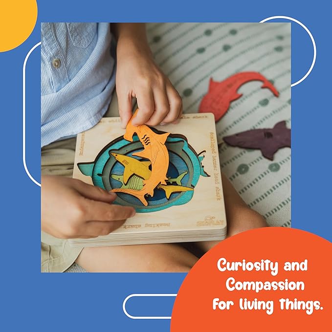Endangered Sharks | Multilayered Wooden Jigsaw Puzzles for Kids | Hammerhead, Great White, Whale, Dusky, Basking | Learning Toy & Gift for Boys Girls Ages 3 Years and Above