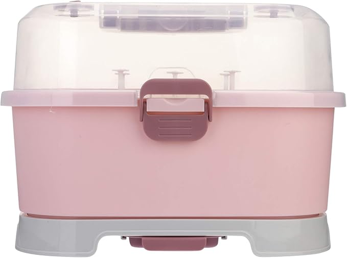 NUOBESTY Portable Baby Bottle Storage Organizer with Cover, Pink Milk Bottle Drying Rack Box for Home and Travel Use, 13.77 X 9.84 X 9.84 Inches