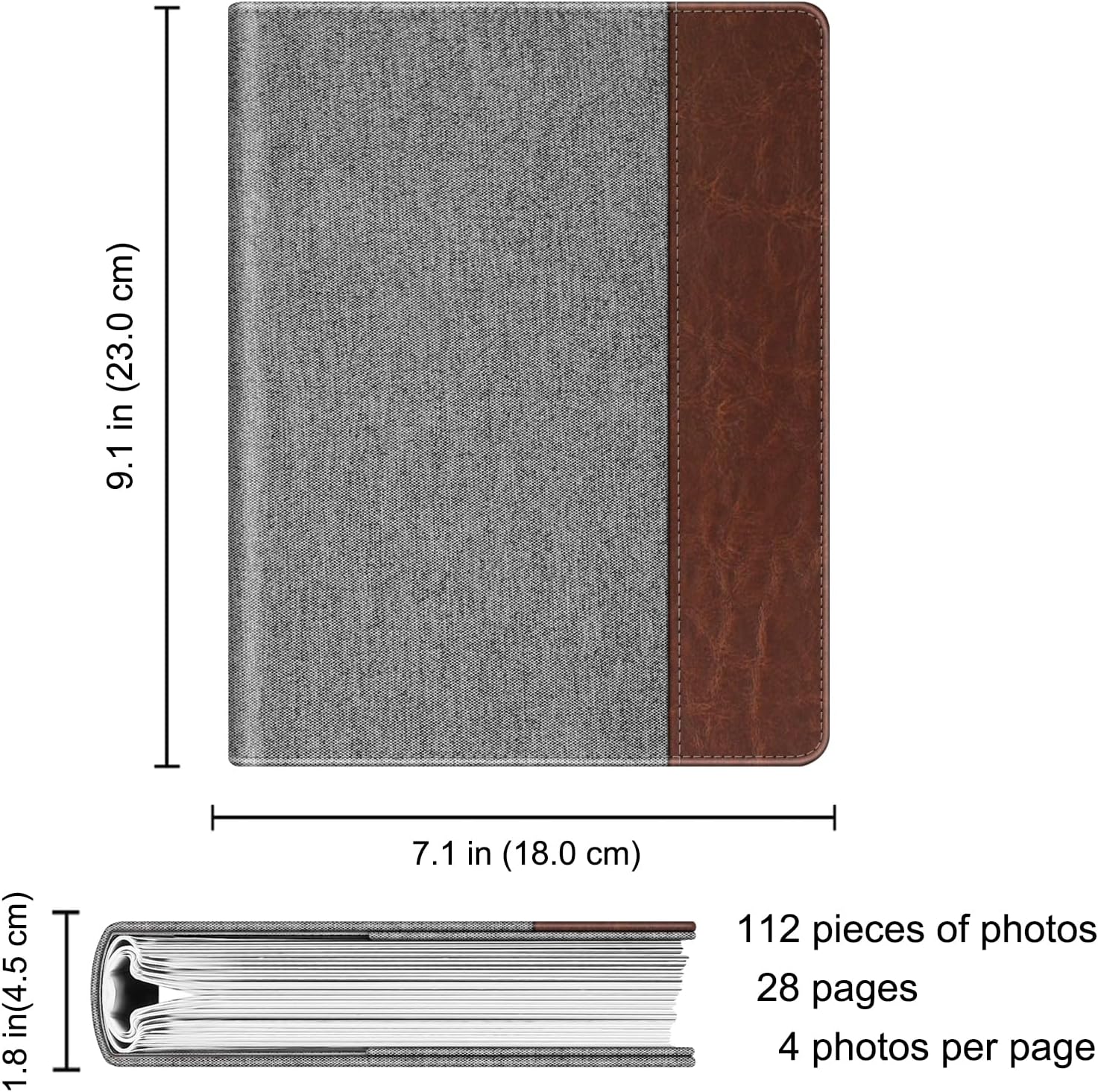 - Hold 112 photos in total. This album contains 28 individual pages with 2 inserts per side [4 photos per page], opens like a book for easy viewing. Designed with insert pocket for credit cards and name cards. Best for weddings, engagements, graduations, baby photos or other arty obsessions.