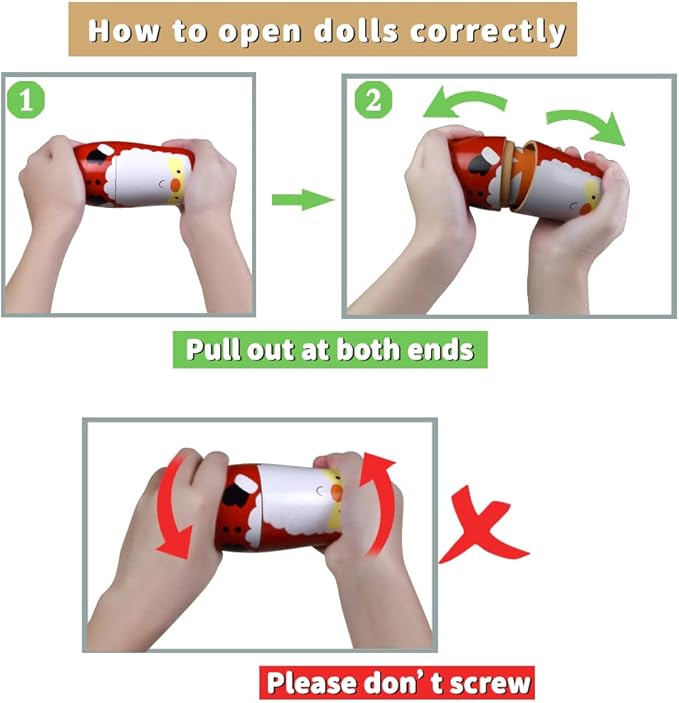 - Easy To Open& Fits Very Well: Your little one are able to open and close it by themselves. The top and bottom pieces fit perfectly. The paint for nesting doll is high-grade eco-friendly, no paint smell