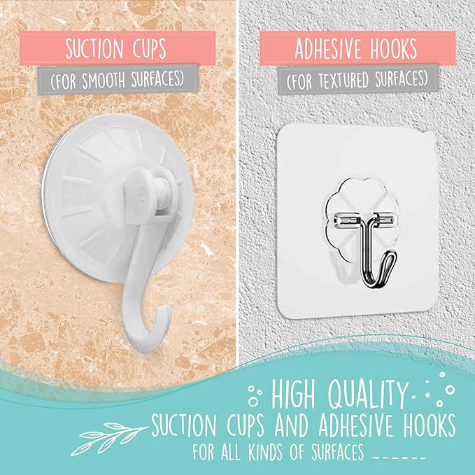 - ⭐ SUPER STICK, SMART SUCTION CUPS: With a non-porous, flat surface our hooks will LOCK tight into place and you will love that organizers come with extra hanging hooks (so you have the choice to hang other things like sponges and much more). Plus we include 4 sticky hooks so you can hang the net ANYWHERE!