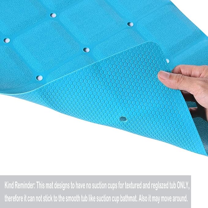 Foldable Non Slip Silicon Bath Mat Bathtub mat Shower mats no Suction Cups for Textured Tub and Reglazed Tub(Foldable-Blue, 28-inch x 14-inch)