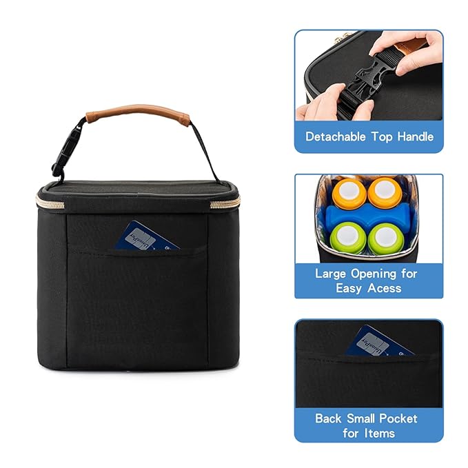 - More Practical: Baby bottle cooler bag have detachable buckle top handle that you can put it in the stroller easily. Except for storing breastmilk, multifunctional cooler bag can as a lunch bag to store refrigerate fruits, lunch or other foods