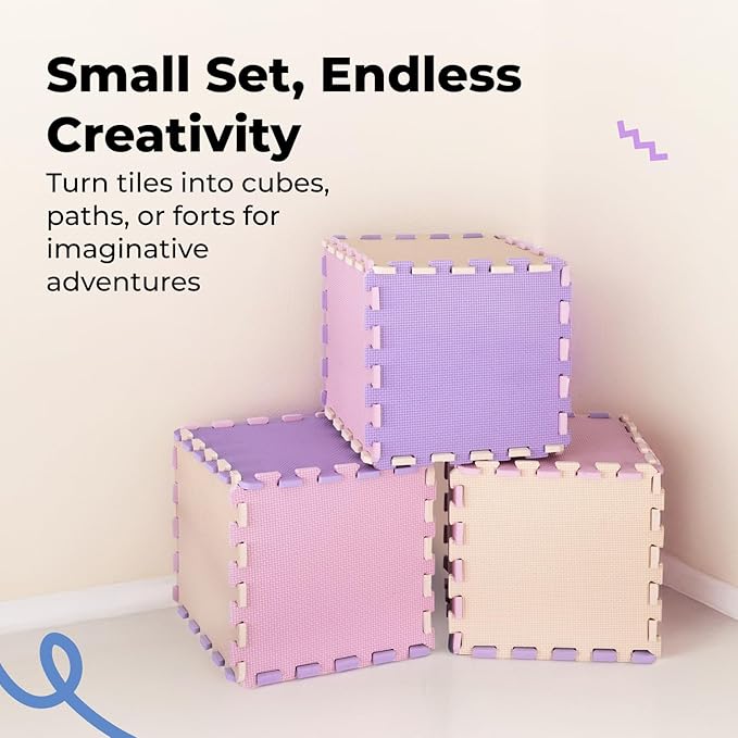 • 😊 STYLISH & ADJUSTABLE PUZZLE MAT – With chic, modern colors, the MioTetto foam floor tiles blend seamlessly into nurseries, playrooms, or living spaces. This baby play mats for floor is perfect for as a 50x50 playpen mat and 74x74 playpen mat. Unlike mats with fixed sizes, this baby mat for floor adapts perfectly to any area — simply add or remove tiles to fit your space.