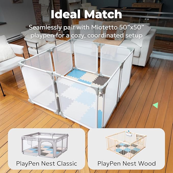 MioTetto Baby Play Mat, Soft Foam Floor Tiles for Kids. Adjustable Interlocking Foam Tiles, Fits with 50x50 Playpen Baby mat for Crawling & Development, Safe & Non-Toxic Playmat for Babies 6-12 Months