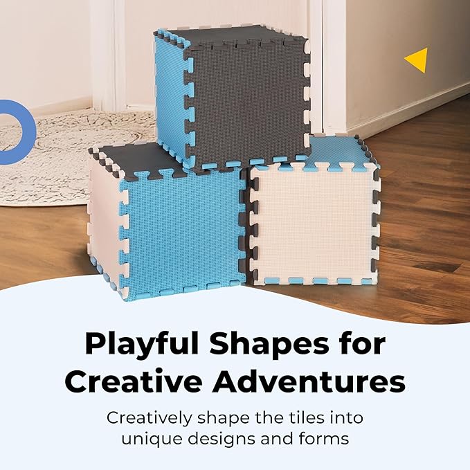 • 😊 STYLISH & ADJUSTABLE PUZZLE MAT – With chic, modern colors, the MioTetto foam floor tiles blend seamlessly into nurseries, playrooms, or living spaces. This baby play mats for floor is perfect for as a 50x50 playpen mat and 74x74 playpen mat. Unlike mats with fixed sizes, this baby mat for floor adapts perfectly to any area — simply add or remove tiles to fit your space.