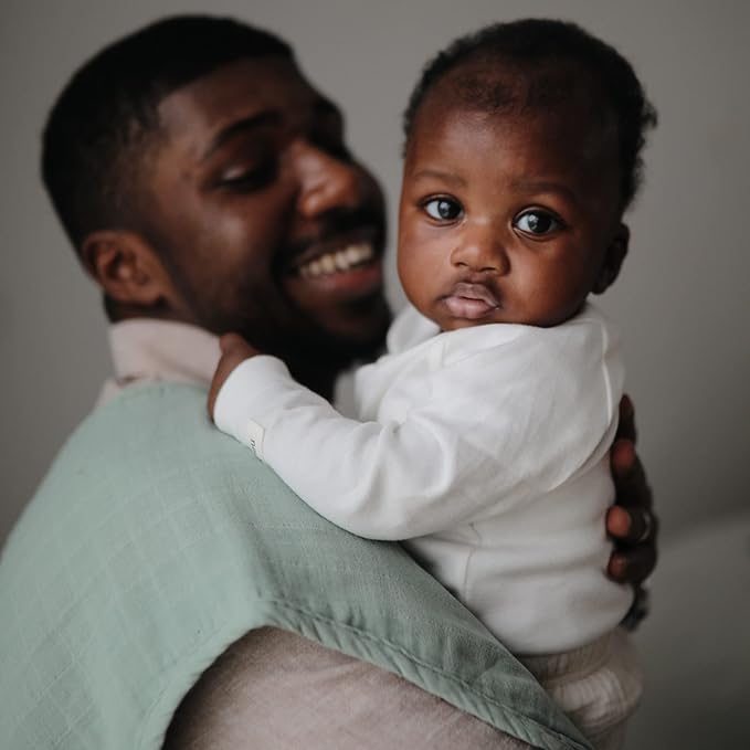 mushie Muslin Baby Burp Cloths | 100% Organic Cotton, Set of 2 (Roman Green/Fog)
