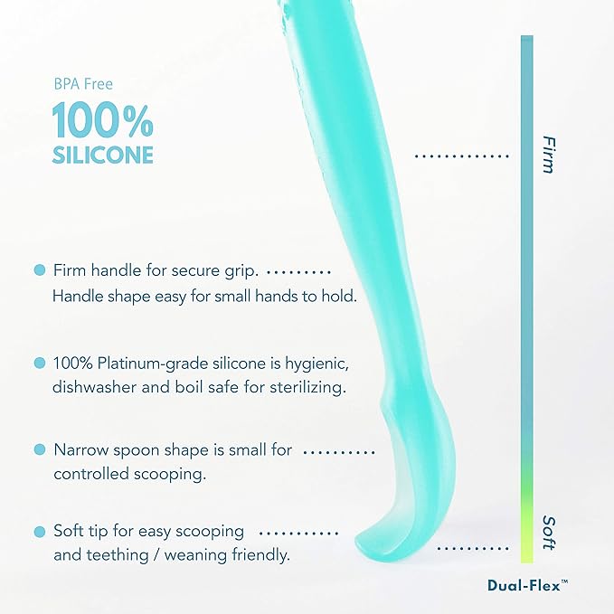 - Baby Led Weaning: Stage 1 learning spoon ideal for ages 4 months plus | Innovative open front scoop provides feeding independence | Pair with our FlexiDip Learning Utensil (sold separately) for dipping baby food and purees