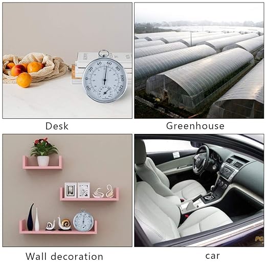 - ALUMINUM DIAL EASY to READ - Hygrometer thermometer clock's glass lenses, black hands, white dial, and clear scale make reading easy. Put the 2-in-1 thermometer and hygrometer on the desk or hang it on the wall. You can know the temperature and humidity of indoor or outdoor at any time