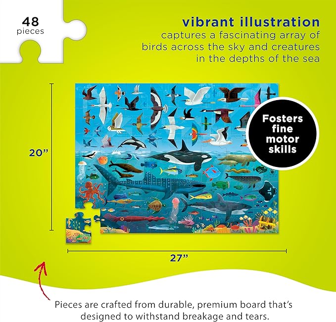 Crocodile Creek Above + Below 48-Piece Jigsaw Floor Puzzle - Fun Floor Puzzles for Kids Ages 4-8 - Sea & Sky - 27 x 20 inches Finished