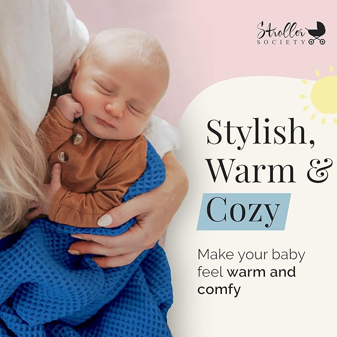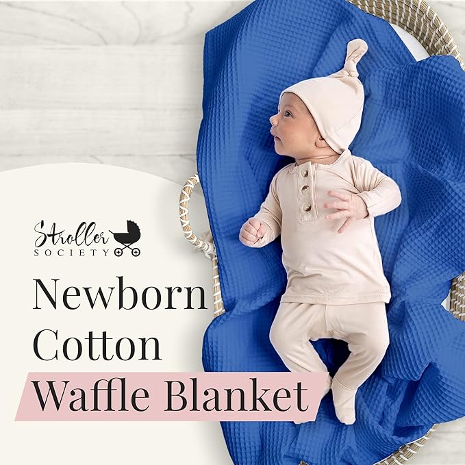 Stroller Society - Swaddles for Newborns & Toddlers, Soft Receiving Blankets Girl & Boy Can Use, Comfy Toddler Blanket & Newborn Swaddle, Cotton Waffle Blanket, Classic Blue, 40 x 40 inches