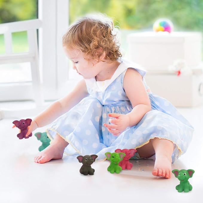 - AWESOME COLOR ASSORTMENT: The squirting elephants brighten up the fun with a vibrant serving of Light green, purple, mint green, pink, blue and grey. Each elephant measures 2.25” tall and make great bathtub toys, pool toys, and fun summer water toys for kids.