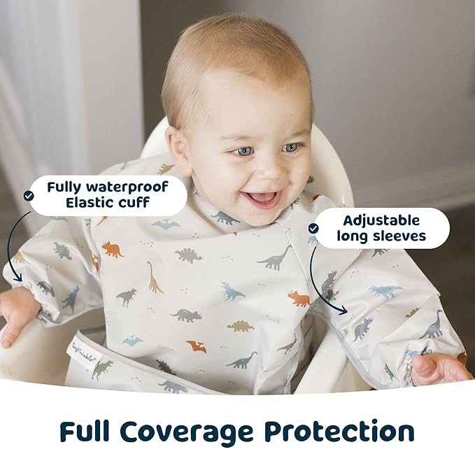 Tiny Twinkle Long Sleeve Bib for Babies & Toddlers – Waterproof Smock Bib for Eating – Machine Washable & Mess-Proof, Baby Feeding Essential & Shower Must-Have(Dinosaur, 2-4Y)