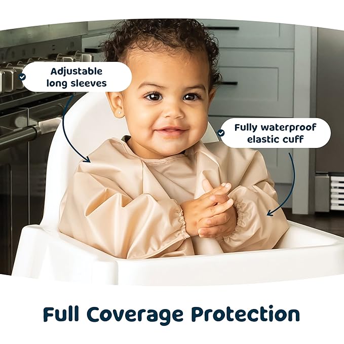 - Mess-Proof Mealtime: Our long sleeve bibs make every meal easy and worry-free for parents. Soft, waterproof fabric and gentle elastic cuffs provide full coverage to keep little ones clean and comfortable.