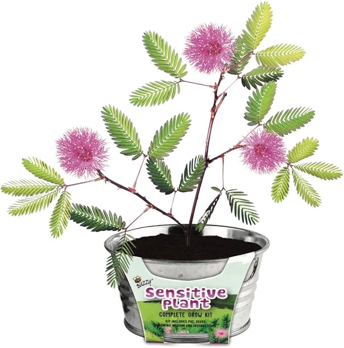 BUZZY Seeds Mini Basin Sensitive Plant Grow Kit, Interactive Leaves Move When Touched, Flower Starter Kit for Kids and Adults | Indoor Gardening Gift, DIY Home Project