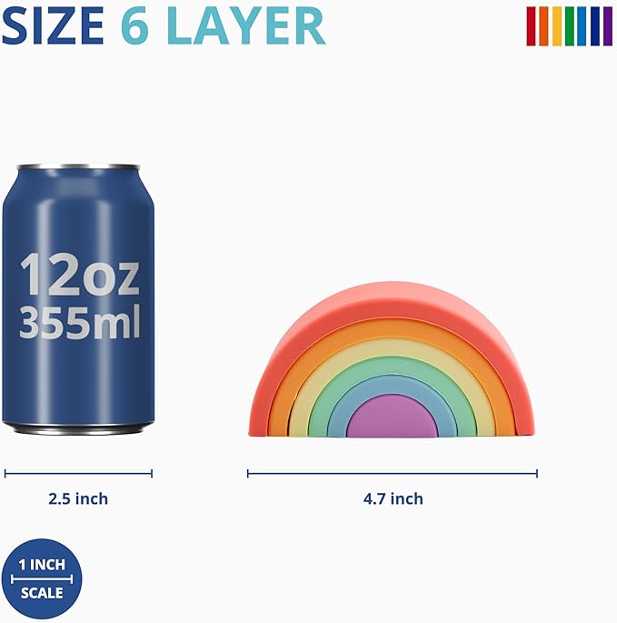 - Durable, Soft and Flexible: Made from food grade silicone, our stacking rainbow is durable, soft and flexible, perfect for children that like to chew and knock everything over.