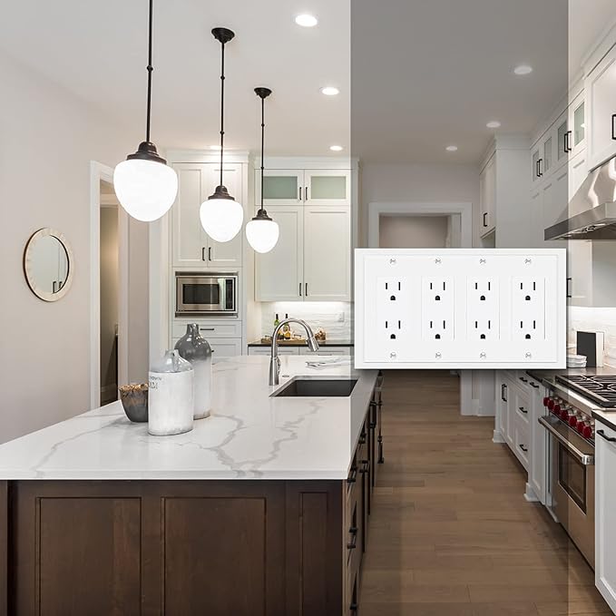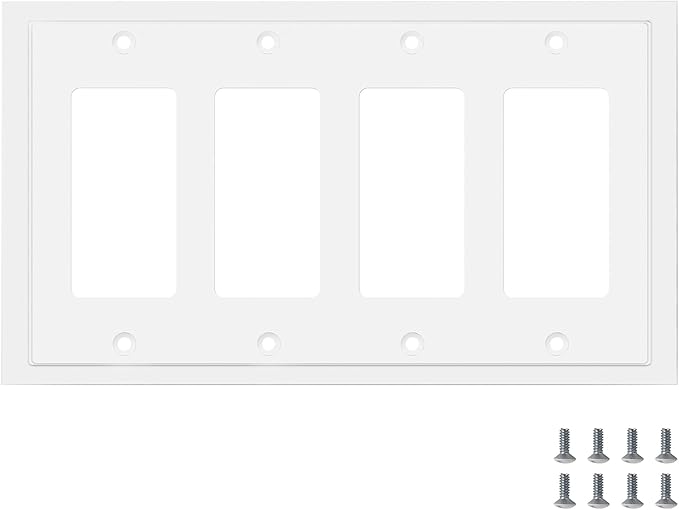 Modern Edge Decorative Wall Plate Switch Plate Outlet Cover, Durable Solid Zinc Alloy (Quad Decorator, White)