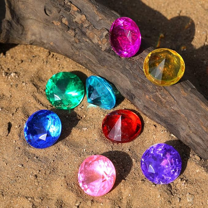 - [Packing-14 Colored Diamonds]: The diving treasure box contains gems of various colors, with blue, green, red, yellow, pink and other colors mixed, they are all packed in a pirate treasure box that may sink,beautiful The colors will attract children’s eyes and encourage them to swim. Your child can easily find it underwater.