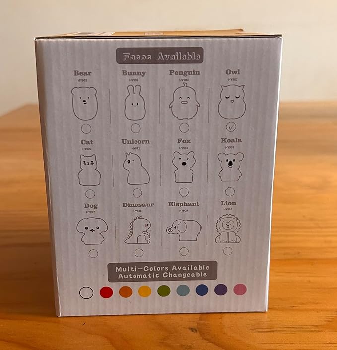- ❤ Control Your Cute Lamp:Our bedside lamp comes with a remote control,which can change color,brightness, working modes and set timing(15mins,30mins and 60mins).Besides, colors of the animal night light can be changed by tapping the back of owl.The led night light brings you a convenient life and is a good choice as a nursery lamp.