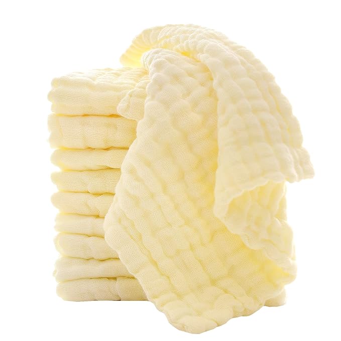 MUKIN Baby Washcloths - Natural Cotton Baby Wipes - Soft Newborn Baby Face Towel for Sensitive Skin- Baby Registry as Shower, 10 Pack 12x12 inches