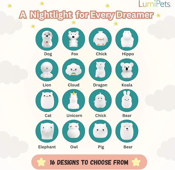 - USB RECHARGEABLE & PORTABLE – Built-in USB-C rechargeable lights battery provides up to 72 hours of use, making this cute small bedside lamp a perfect travel animal night light for sleepovers, trips, or nursery use