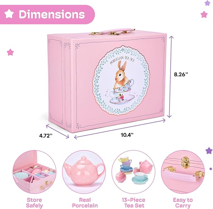 - Crafted with Durable Real Porcelain: Unlike plastic toy tea set options, this high-quality ceramic set is built to last and perfect for display, imaginative play, or as a keepsake collection