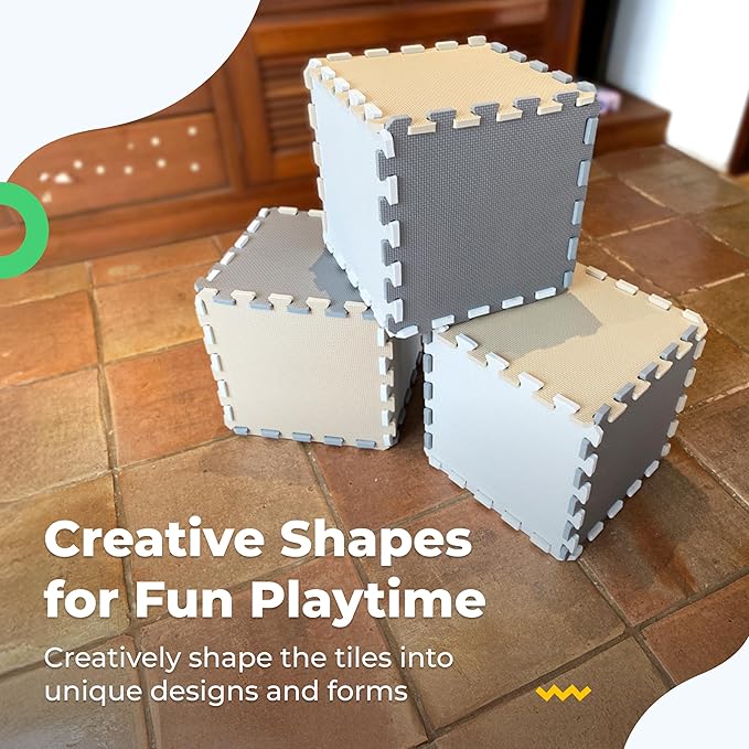 • 😊 STYLISH & ADJUSTABLE PUZZLE MAT – With chic, modern colors, the MioTetto foam floor tiles blend seamlessly into nurseries, playrooms, or living spaces. This baby play mats for floor is perfect for as a 50x50 playpen mat and 74x74 playpen mat. Unlike mats with fixed sizes, this baby mat for floor adapts perfectly to any area — simply add or remove tiles to fit your space.