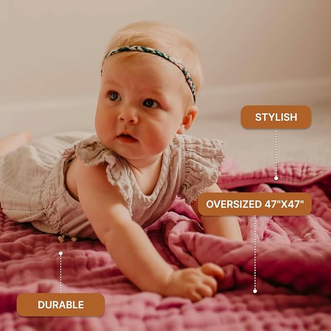 - OVERSIZED FOR YEARS OF COMFORT - Measuring 47" x 47", our muslin blankets are generously sized to grow with your child-from newborn snuggles to toddler story time. Use it in the crib, on the couch, in the car seat, or as a floor blanket for tummy time. It’s designed to be their go-to comfort piece at every stage.