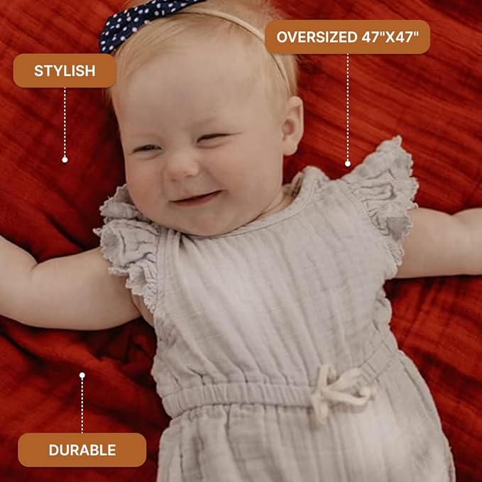 - OVERSIZED FOR YEARS OF COMFORT - Measuring 47" x 47", our muslin blankets are generously sized to grow with your child-from newborn snuggles to toddler story time. Use it in the crib, on the couch, in the car seat, or as a floor blanket for tummy time. It’s designed to be their go-to comfort piece at every stage.