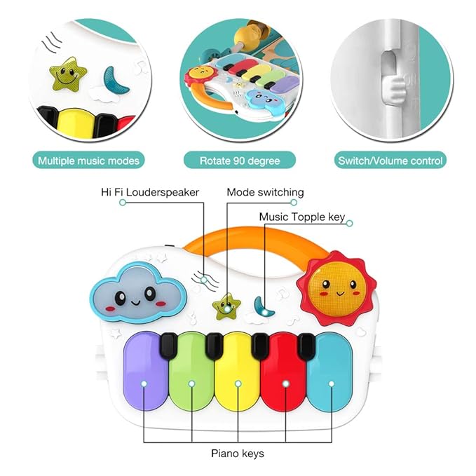 - Protect Baby's Eyesight: The built-in LED soft and delicate lighting of the piano gym protects the baby’s eyesight and promotes visual discrimination and development. Flashing interesting lights also makes playing more interesting and attractive