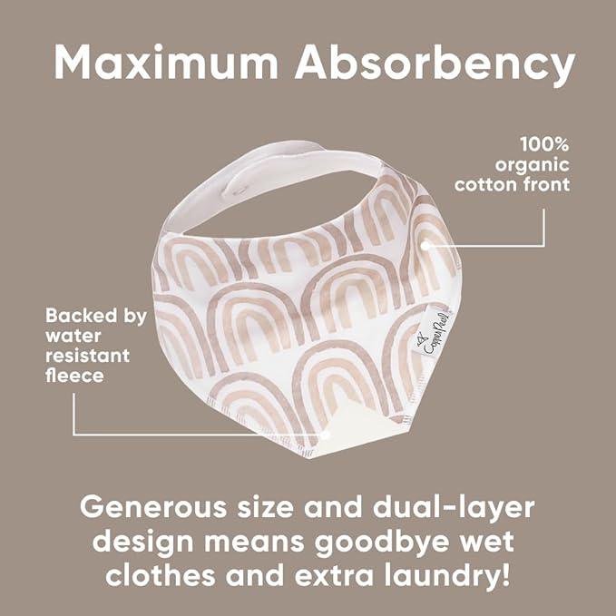 - MAXIMUM ABSORPTION: Fronted by ultra-soft Organic Cotton and lined with water-resistant polyester fleece to provide an extra layer of absorbency. Each bib is crafted with dual-layer protection against heavy drooling or spit-up, keeping your baby dry and comfortable.