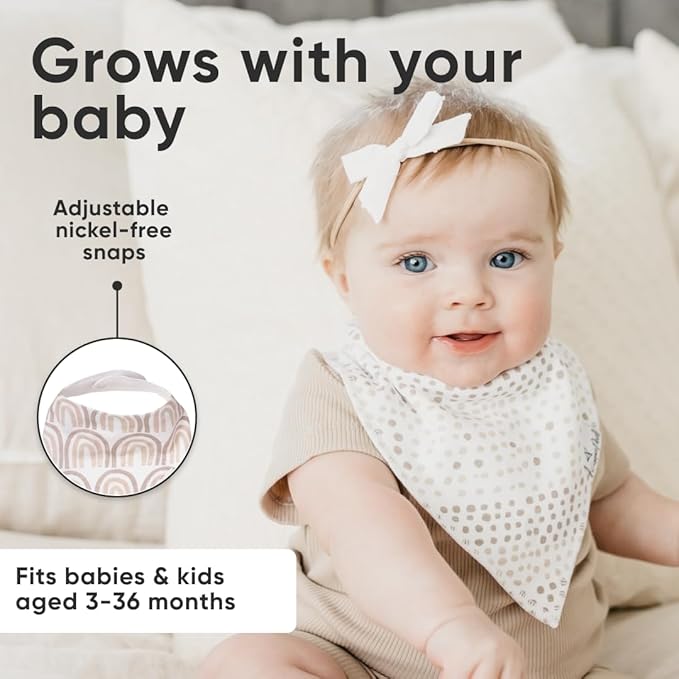 - GROWS WITH YOUR BABY: Each bib features two adjustable nickel-free snaps, allowing for a perfect fit from newborn through toddlerhood (3–36 months).