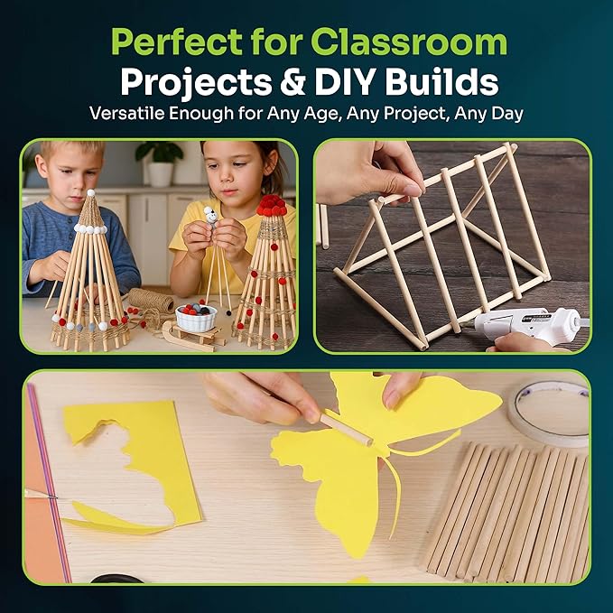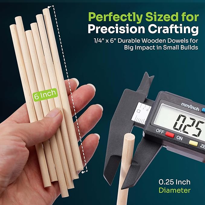 - KID-FRIENDLY THICK WOODEN DOWEL FOR SCHOOL & HOME: These small wooden rod are easy to work with and fit in any hand. The 6 inch dowel rods are wood sticks for crafting for STEM projects, model building, games, home decor, school supplies and more.