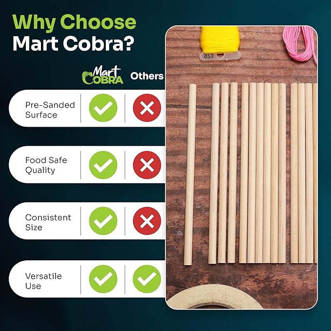 - QUALITY ASSURANCE GUARANTEE: Buy this 200 pack of MartCobra Wooden Dowels with confidence and enjoy it RISK FREE! If you are not completely satisfied, please feel free to contact us. Craft sticks round are sturdy, straight, safe for children.