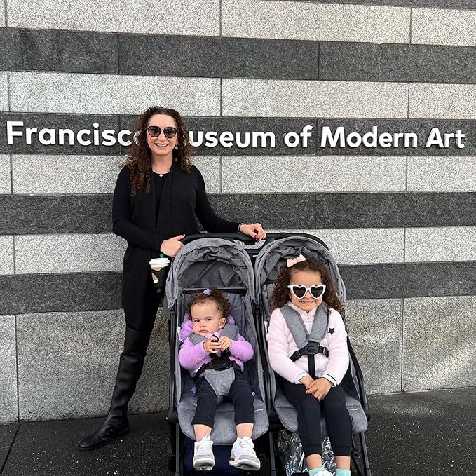 - Compact Fold & Effortless Navigation - Navigate tight spaces with ease thanks to a slim 30" width that fits standard doorways. This side by side stroller collapses in one quick step into a trunk-friendly size (30"L x 23"W x 9"H). The integrated carry handle makes transport simple.