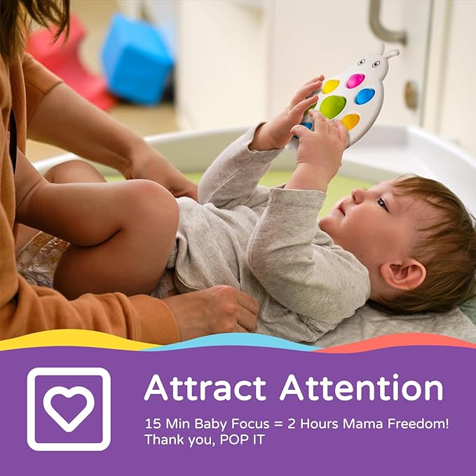 - Engage the Brain Sense: Push and bounce, “Pop, Pop, Pop” sounds very fun for babies, encouraging fine motor skills, tactile stimulation, sensory exploration, cause-and-effect learning.